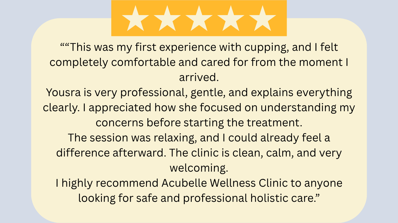 At Acubelle Wellness Clinic, we help you understand and treat the root cause of your symptoms using acupuncture, cupping, and functional nutrition—so you can heal safely without relying on medications.